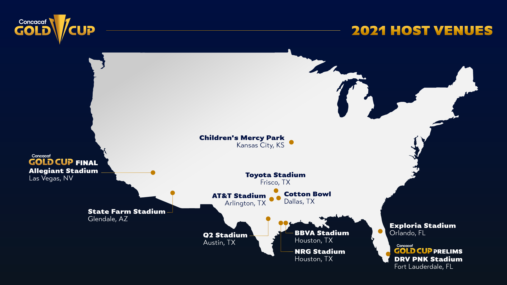 This announcement comes after Allegiant Stadium (Las Vegas, NV) and DRV PNK Stadium (Fort Lauderdale, FL) were confirmed as the host venues for the Final (August 1) and the Prelims (July 2-6), respectively. The 2021 Concacaf Gold Cup is a key part of the Confederation's 60th anniversary celebration and a vibrant summer of football, which will also include the Concacaf Nations League Finals in June.